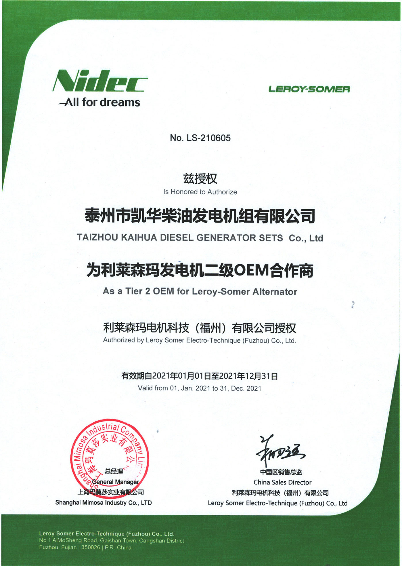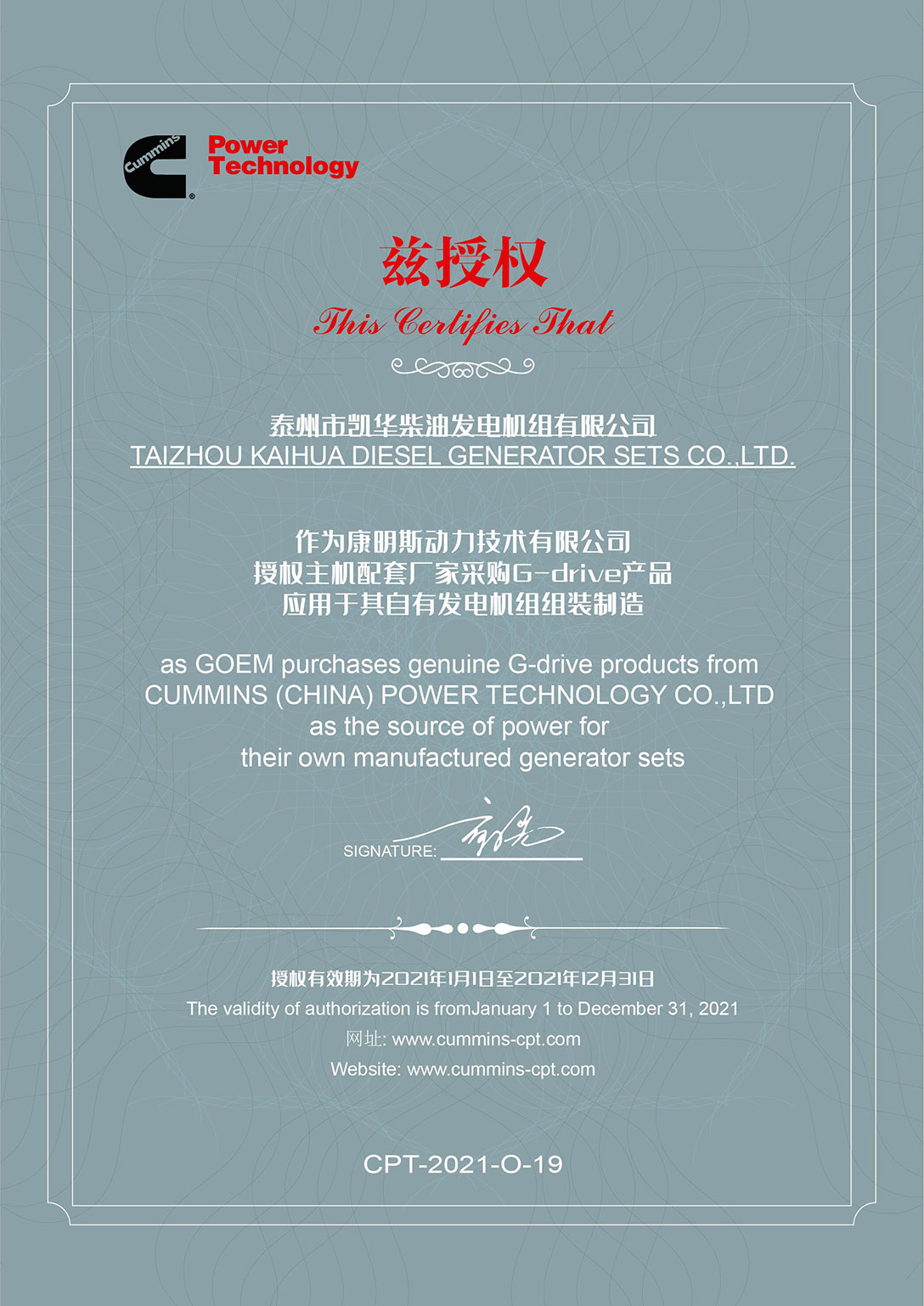 泰州市凱華柴油發(fā)電機組有限公司創(chuàng)建于2003年,是一家集柴油發(fā)電機組燃氣發(fā)電機組的研發(fā)、生產、銷售為一體的高新技術民營企業(yè),公司座落于“漢唐古郡,淮海名區(qū)”,具有“鳳凰城”美稱的祥泰之州——江蘇省泰州市,地處中國經濟最發(fā)達的長三角經濟圈,水陸空立體交通,地理位置十分優(yōu)越。公司目前注冊資本金11800萬元人民幣,生產基地占地六十畝,現(xiàn)有各類高素質員工一百多名,專業(yè)技術人員達46人,其中高級技術人員16人,年銷售額近6億元。 公司主營產品:3~3000KW陸用柴油發(fā)電機組,15~600KW移動拖車電站,12~1000KW船用應急柴油發(fā)電機組,各種靜音型、中高壓、多機并聯(lián)、燃氣等特種機組以及進口系列柴油發(fā)電機組,可滿足不同客戶的一切電力需求,還可滿足用戶不同電壓、不同頻率的要求。凱華公司是康明斯品牌的授權代理商,專業(yè)生產供應康明斯柴油發(fā)電機組。